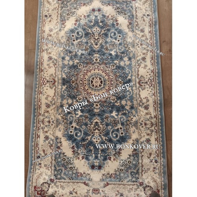 Отличный ковёр, качественный и очень приятно ножкам по нему ходить, без заломов, цвет бежево-серый с оттенком пыльно голубого