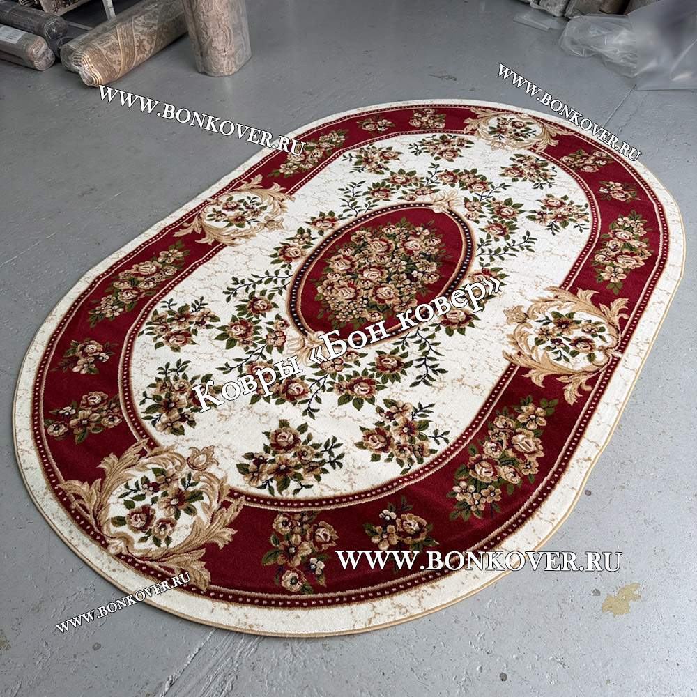 РОССИЙСКИЙ ЖАККАРДОВЫЙ КОВЕР КРАСНЫЙ МЕДАЛЬОН ОВАЛЬНЫЙ станет шикарным преображением жилого помещения, подчеркивая высокий статус хозяина.